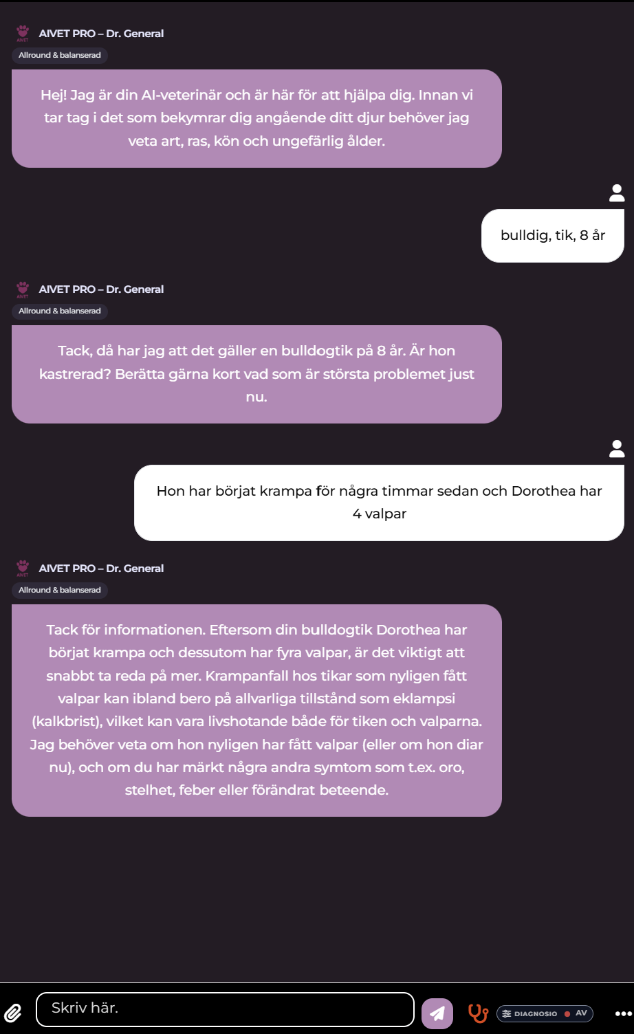 AIVET ger vägledning och riskbedömning – men ersätter inte veterinärens fysiska undersökning.