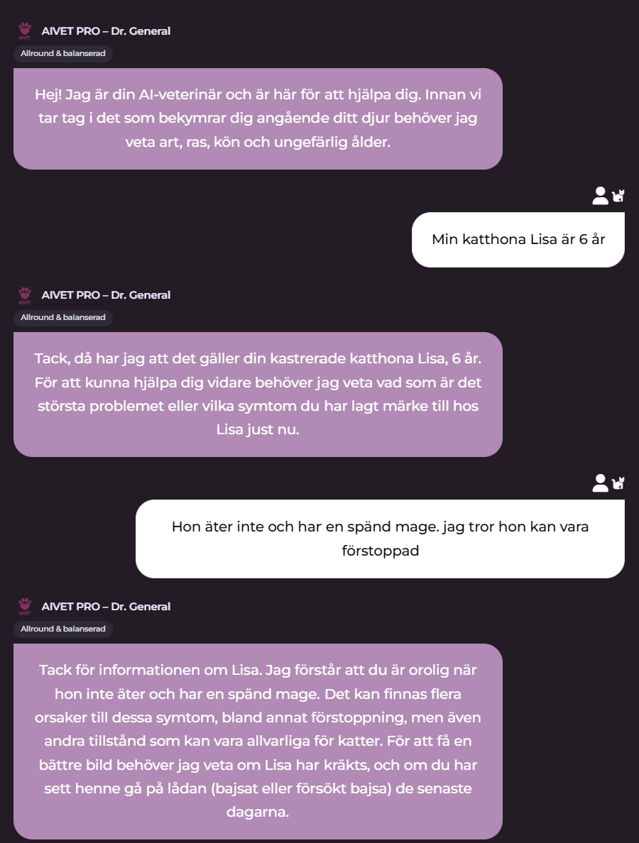 AIVET ger vägledning och riskbedömning – men ersätter inte veterinärens fysiska undersökning.