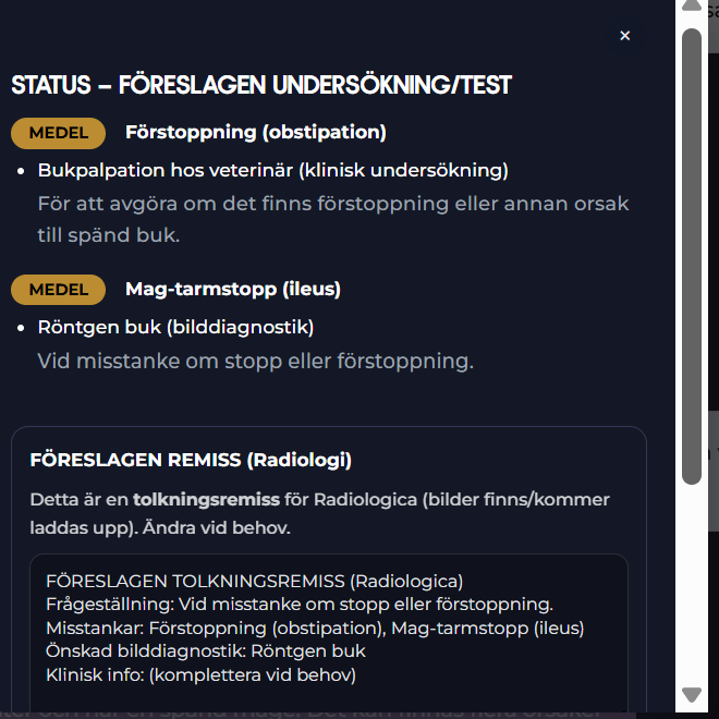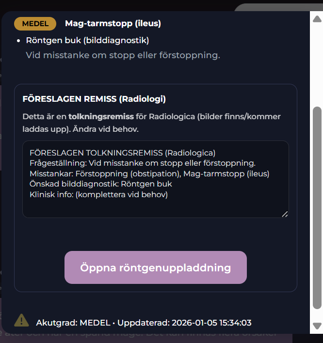 Exempel på Föreslagen Diagnostik från Radiologica - Röntgenremiss
